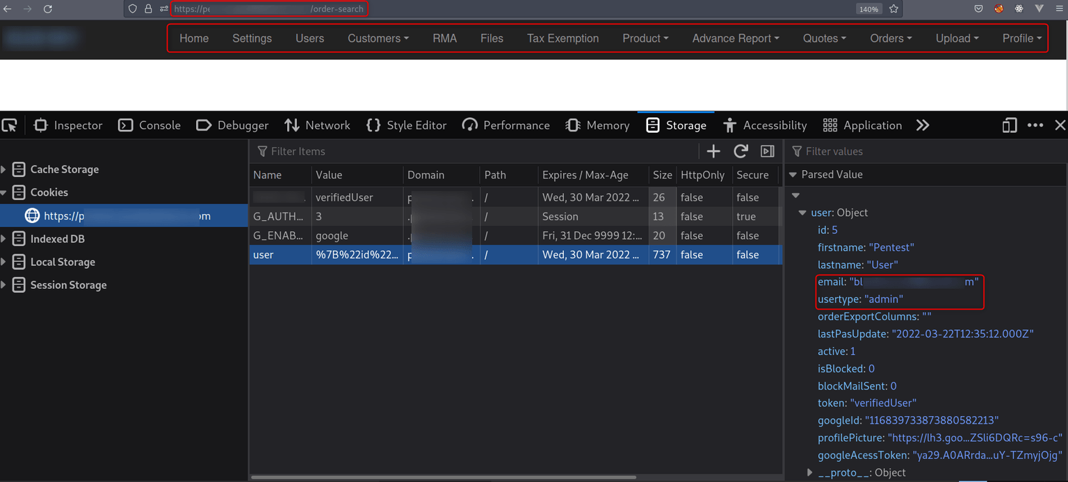 After simply changing the usertype from user to admin, you suddenly find many extra options such as: Advance Report, Tax Exemption, Users, and Settings. As a result, we’ve elevated our privileges and gained user management capabilities.