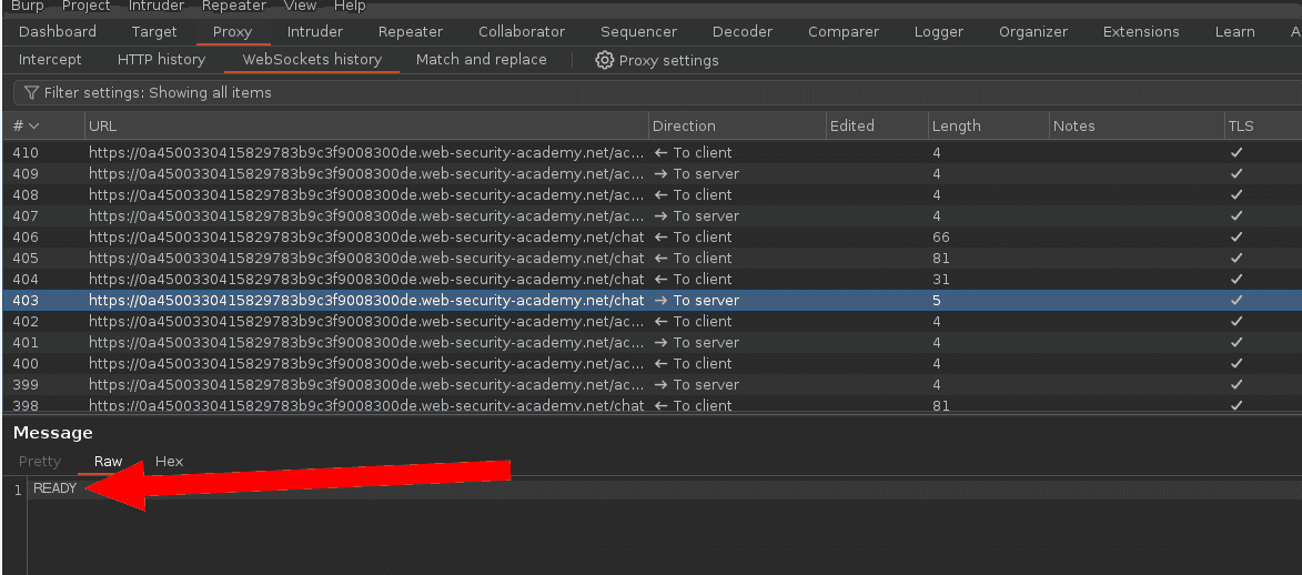 To demonstrate a Cross-Site WebSocket Hijacking exploitation with Burp, let’s use the dedicated PortSswigger Academy challenge.