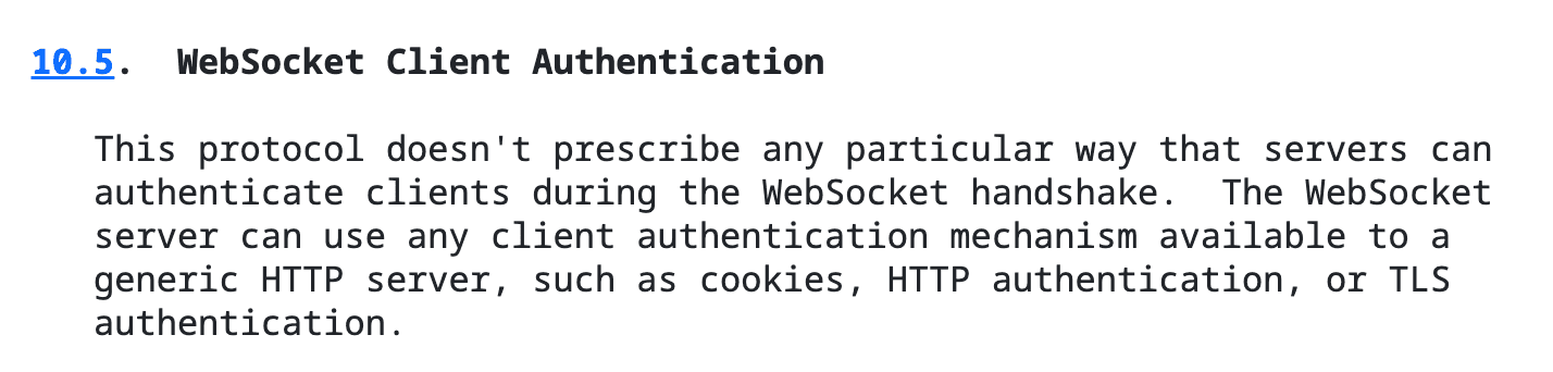 While reading the RFC and digging for a hint that can lead to that kind of vulnerability, I found those two security-related RFC entries - “Security Model” and “WebSocket Client Authentication.”