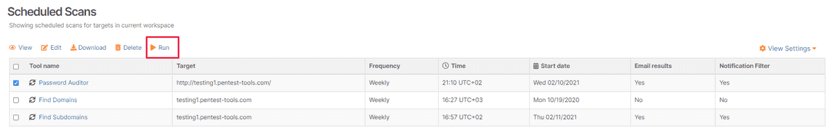 To keep your work flexible and productive, select Scheduler from the Dashboard, select a Tool name and Run a specific scan.