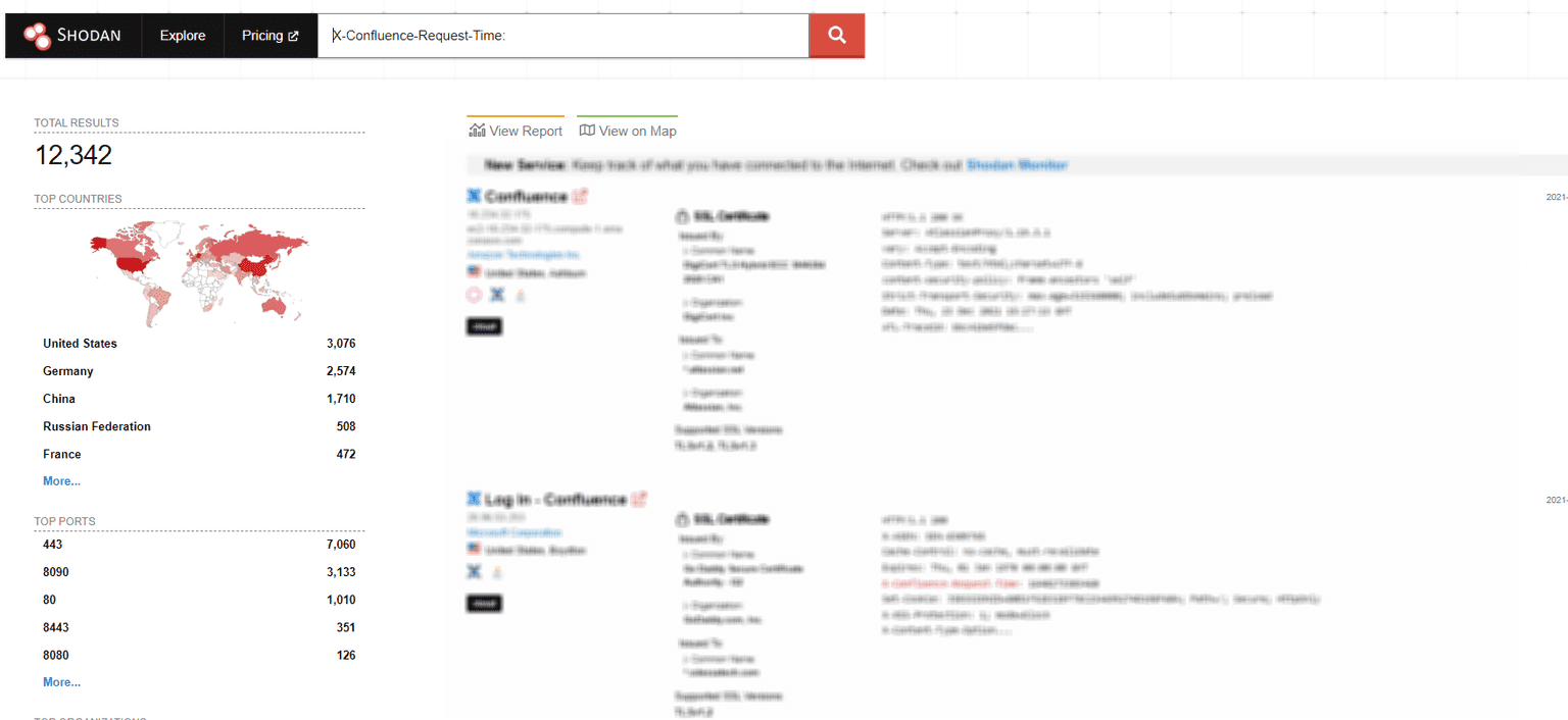 Using the Shodan search engine with the X-Confluence-Request-Time cookie will reveal more potential targets for motivated attackers: